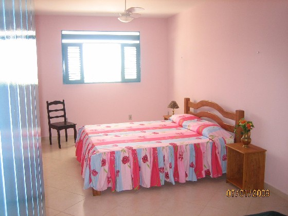Os quartos são grandes e recém-pintados; têm ventilador no teto, TV, e frigobar.